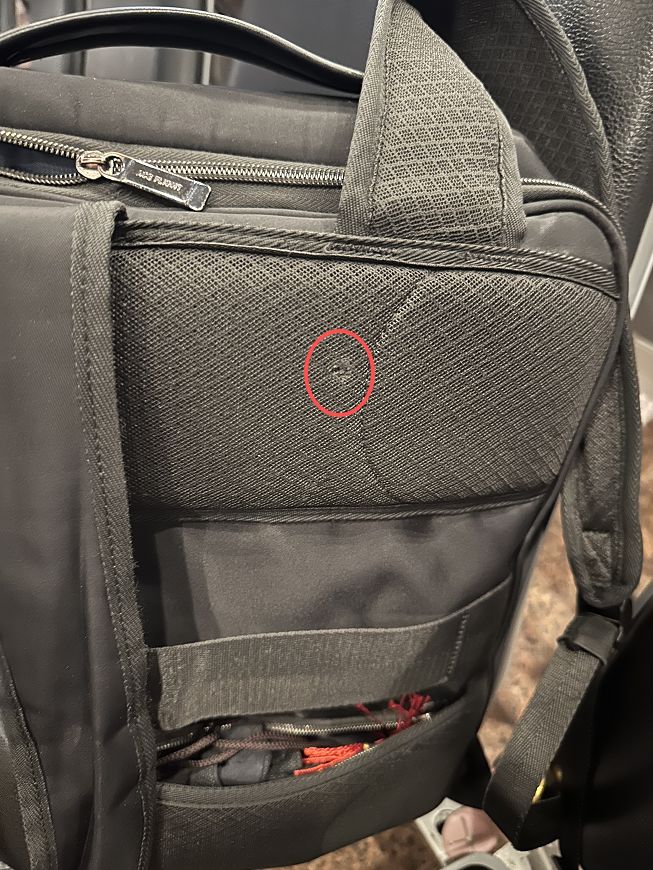 背包上有一个弹孔,子弹击穿了背包,打进了笔记本,幸运的是,最后被笔记本的金属结构和其挂装的铁制手机支架卸去了所有冲力,没有完全射穿出去,真的是“拼命保护了我”。